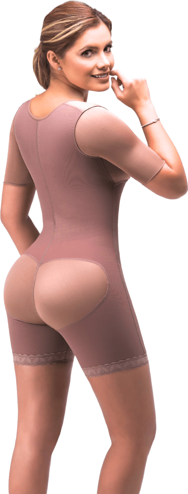 Esta faja post-quirúrgica con mangas, cubre tu cuerpo completamente en abdomen, cintura, brazos y piernas. Está elaborada 100% en powernet suave de comprensión media que moldea tu cuerpo y te brinda la compresión adecuada para un rápida recuperación después de liposucción o abdominoplastia.