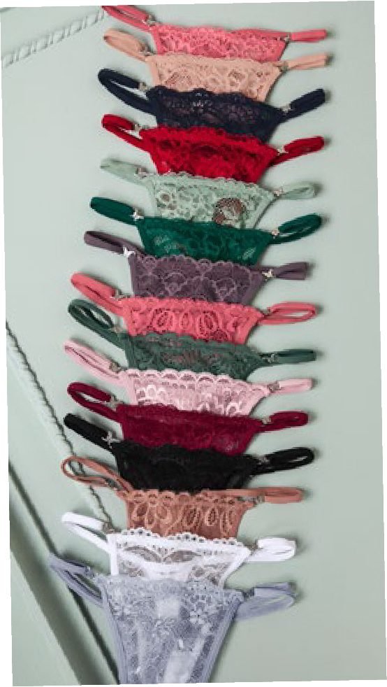 Este panty tipo hilo es el indicado para que lo uses con tus vestidos y faldas ajustadas, es el panty mas invisible de todos lo puedes usar si ningún problema con este tipo de prendas. Se trata de un triangulo en encaje que cubre la parte delantera, Cuenta con tiras laterales ultra planas, las puedes graduar par que se acomode a la horma de tu cuerpo, cuenta con dos sutiles apliques en forma de mariposa brindado le un toque mágico.