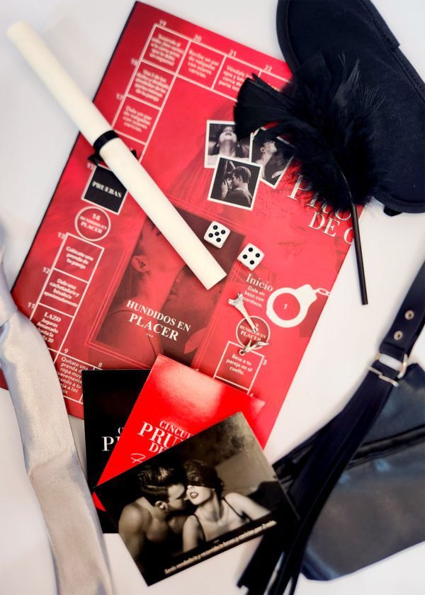 Como todo un “Grey”, tu pareja deberá ordenarle lo que debe hacer, en un juego llego de sorpresas con el que podrán dar rienda suelta a sus fantasías. El juego consiste en tomar una carta y realizar la prueba que aparezca en ella. Tu pareja deberá ordenarte lo que tienes que hacer, es un juego que esta lleno de sorpresas con el que podrás dar rienda suelta a tus fantasías más excitantes. INCLUYE: LAZO PLUMA LATIGO CUBREOJOS CONTRATO FICHAS DADOS CARTA CORBATA TABLERO Diviértete con tu pareja al estilo de “50 SOMBRAS DE GREY”